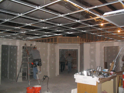 Marvin, Richard and John relaxing after Cracker Barrel and a long day working Doug and Jon Did Chris beat Grandma? t-bar is almost up Finishing t-bar in fellowship hall.